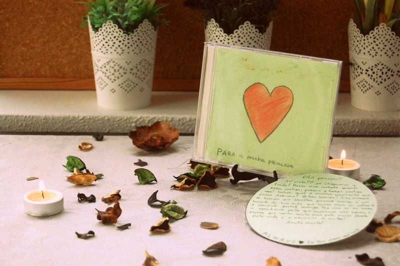 Mais uma prendinha muito simples de se fazer em que consiste em pegar numa caixa de cd antigo e personaliza-la a vosso gosto . Para terminar escreve-se uma mensagem em papel colando de seguida no cd em si como podemos ver na imagem a cima .