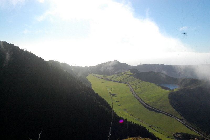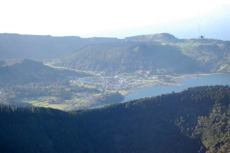 Como estávamos perto de outros miradouros que por sua vez estão mais perto das sete cidades fomos então à vista do rei , outro sítio que aconselho irem , e fizemos o volteio por cima das sete cidades onde paramos então para apreciar a vista que , como a uma altitude mais baixa , estava muito melhor .