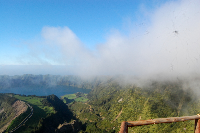 Mas a melhor parte da lagoa do canário nem é a própria lagoa em si , ao continuar-mos o trilho sempre em frente , rodeados sempre de árvores e de ar puro , vamos chegar a um miradouro esplêndido . Como estamos ao mesmo nível das nuvens é difícil de tirar boas fotos pois num momento está céu aberto e no outro já tem uma nuvem em frente da máquina .